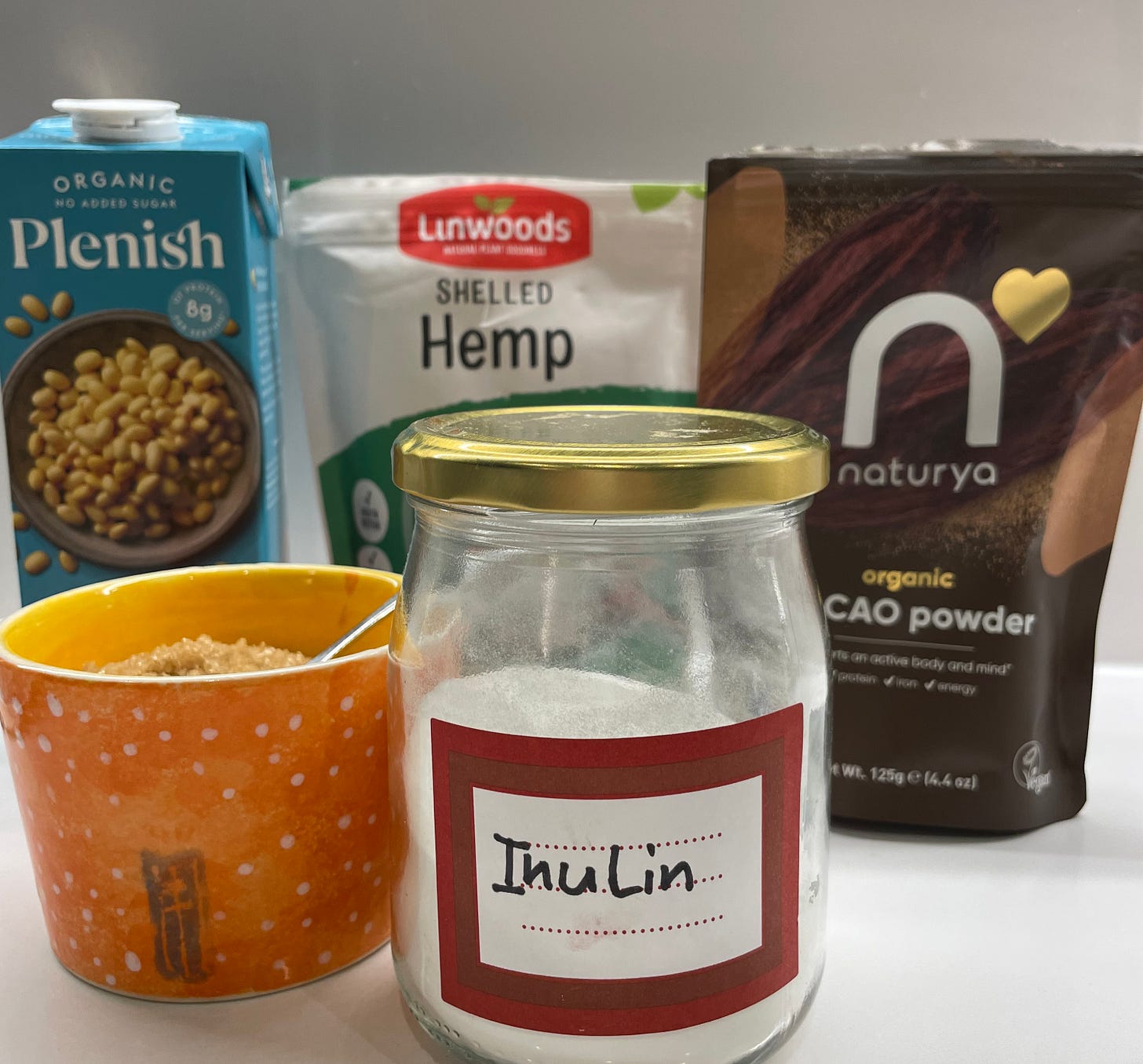 My recipe also delivers you polyphenols in the cacao and inulin fibre to help your microbiome flouish.